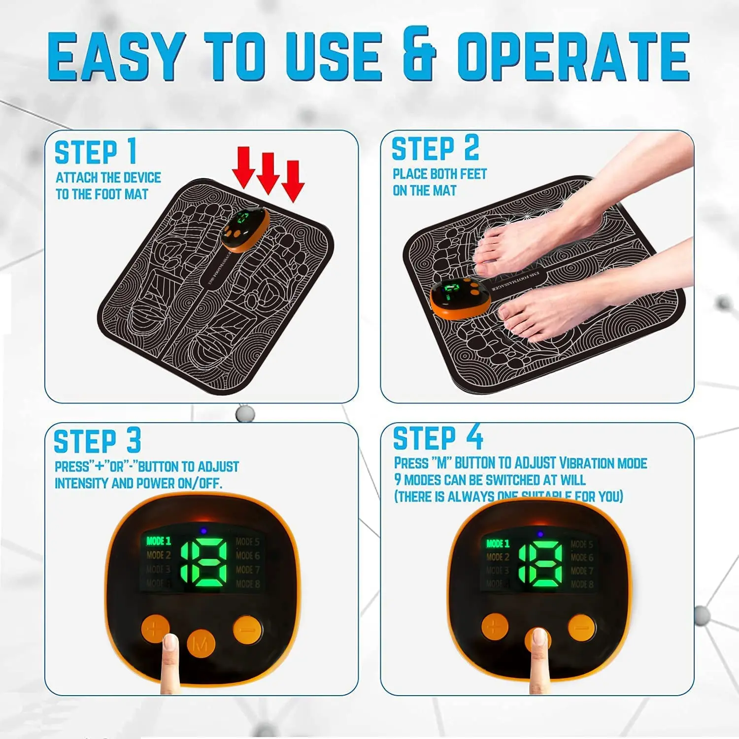 - **Tecnologia de Pulsos Elétricos**: Estimula os músculos das pernas e pés, ajudando a reduzir a fadiga e promover a circulação sanguínea.